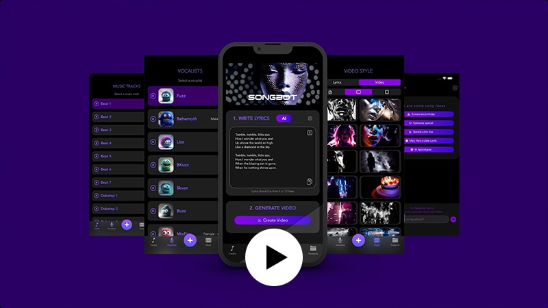 SongBot.ai is the first text-to-vocals app! SongBot.ai uses the power of AI to generate awesome lyrics and killer vocals!